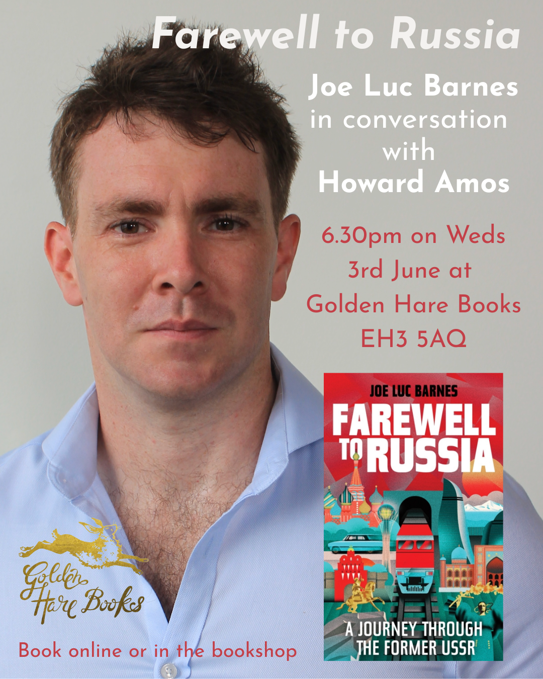 Join us in the bookshop to hear Joe Luc Barnes in conversation with Howard Amos about Farewell to Russia and Russia Starts Here.